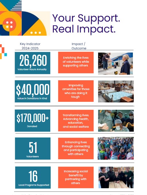 Through the generosity of our community who have donated their goods - and the energy and commitment of the amazing volunteers at the Warehouse, the Op Shop and Club Members, over the 2024/2025 year Rotary Rosebud-Rye has been able to support those in need through: