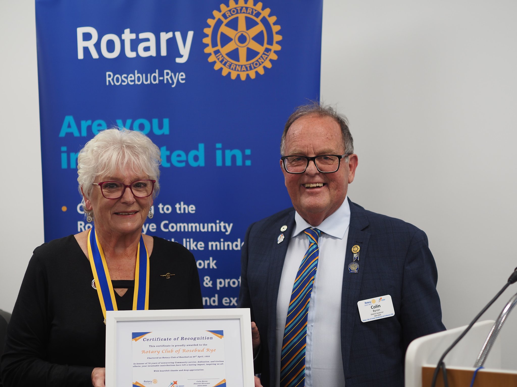 To mark the occasion Past Presidents Di Rollo and Barry Osborne unveiled the Charter, now beautifully framed as a memento of 70 years of serving our community.